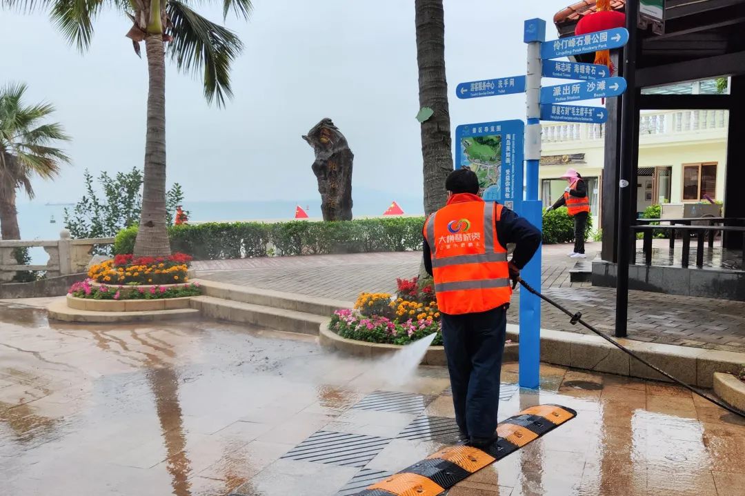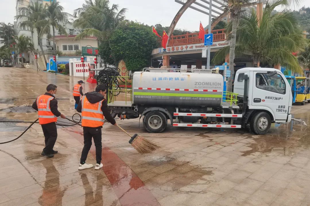進(jìn)駐首周,大橫琴城資海島服務(wù)團(tuán)隊(duì)便迎來(lái)了春節(jié)長(zhǎng)假的旺季保障任務(wù)。在時(shí)間緊、任務(wù)重的情況下,海島服務(wù)團(tuán)隊(duì)全體出動(dòng),積極配合擔(dān)桿鎮(zhèn)開(kāi)展“除舊迎新專(zhuān)項(xiàng)行動(dòng)”,按照“大清掃、大沖洗、大整治”作業(yè)模式,全面沖洗路面的污漬、青苔,清理垃圾、落葉、雜草等,助力營(yíng)造干凈、整潔、有序的海島環(huán)境。