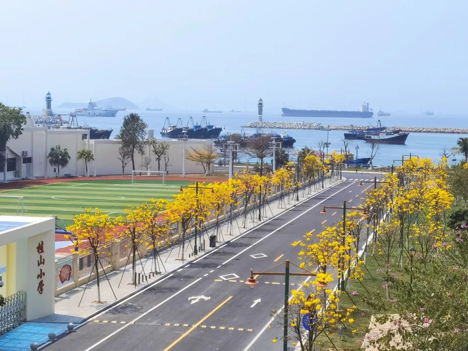 精細(xì)化養(yǎng)護(hù)海島上的一百多棵黃花風(fēng)鈴木,助力展現(xiàn)明媚動(dòng)人、賞心悅目的景觀效果