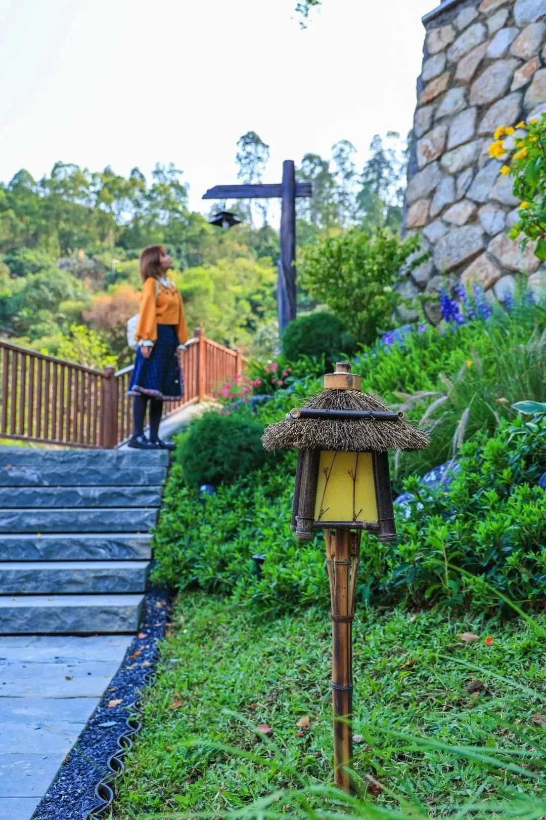 棧道兩旁郁郁蔥蔥的花草樹木