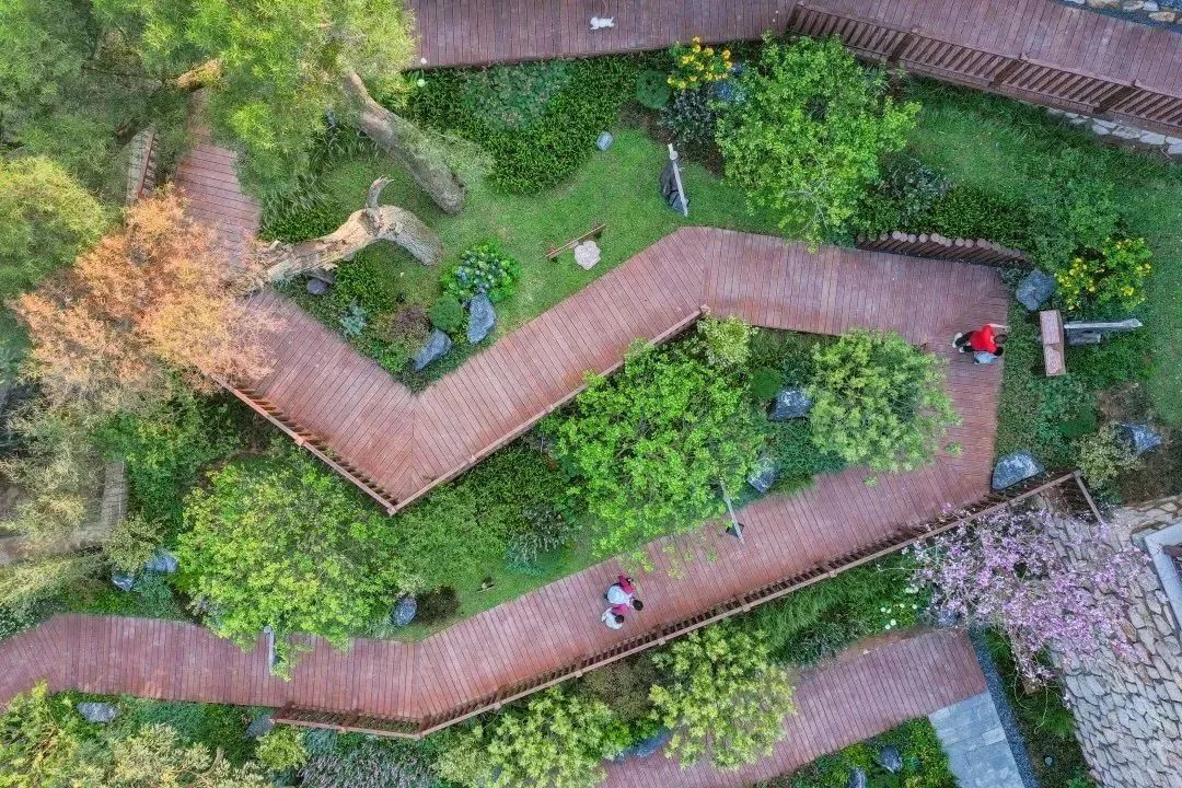 而觀景亭的造型與支撐結(jié)構(gòu)更是參照古樟樹枝杈形態(tài),亭內(nèi)設(shè)有科普講解牌與坐凳,與四周鳥語花香的自然環(huán)境構(gòu)成了天然的林間課堂,可供游人休憩、供自然愛好者交流學習。