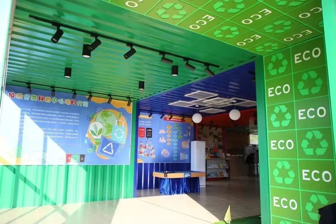 合作區(qū)垃圾分類科普中心室內(nèi)面積達(dá)126㎡,以錯位Z型布置的集裝箱,形成內(nèi)向圍合的宣教場地,整體劃分為科普區(qū)、活動區(qū)和展覽區(qū)三大功能區(qū),是合作區(qū)以“綠色、循環(huán)、可持續(xù)”為垃圾分類宣導(dǎo)理念,打造的集“活動、教育、展學(xué)”三位一體的垃圾分類趣味互動學(xué)習(xí)空間。