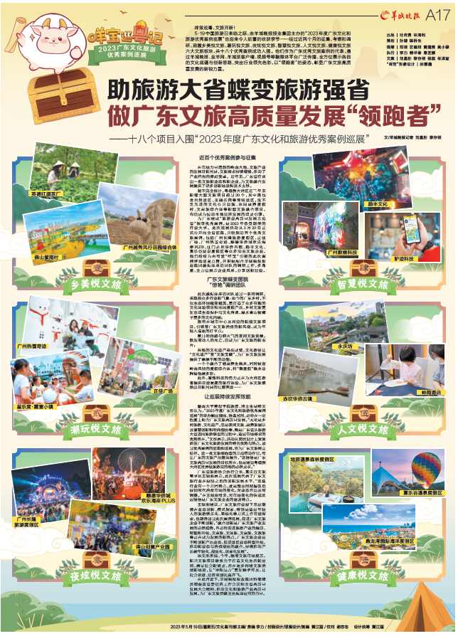 “2023年度廣東文化和旅游優(yōu)秀案例巡展”由羊城晚報(bào)報(bào)業(yè)集團(tuán)主辦,旨在為廣東建成“旅游業(yè)高質(zhì)量發(fā)展示范省”探尋優(yōu)秀案例。此次巡展活動從3月20日正式公開向全省征集,共收到近百個優(yōu)秀文旅案例,包括廣州長隆旅游度假區(qū)、正佳廣場、廣州熱雪奇跡、順德華僑城歡樂海岸PLUS、江門赤坎華僑古鎮(zhèn)、勵豐文化、熹樂谷溫泉度假區(qū)等眾多知名文旅企業(yè)、項(xiàng)目。最終,經(jīng)過近兩個月的征集、考察和調(diào)研,包括橫琴星樂度·露營小鎮(zhèn)在內(nèi)的18個項(xiàng)目正式入圍。