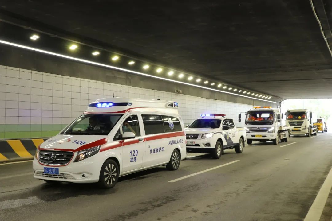 夏日酷暑高溫,隧道通車情況復雜,如果發(fā)生車輛碰撞起火事故怎么辦?車上人員如何救援?滯留車輛如何疏散?橫琴隧道突發(fā)交通事故應急處置演練,以“實戰(zhàn)”遞交答卷。