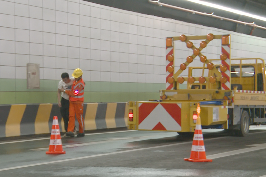 在發(fā)現(xiàn)車輛碰撞事故后,迅速在隧道口進行圍蔽和疏導;