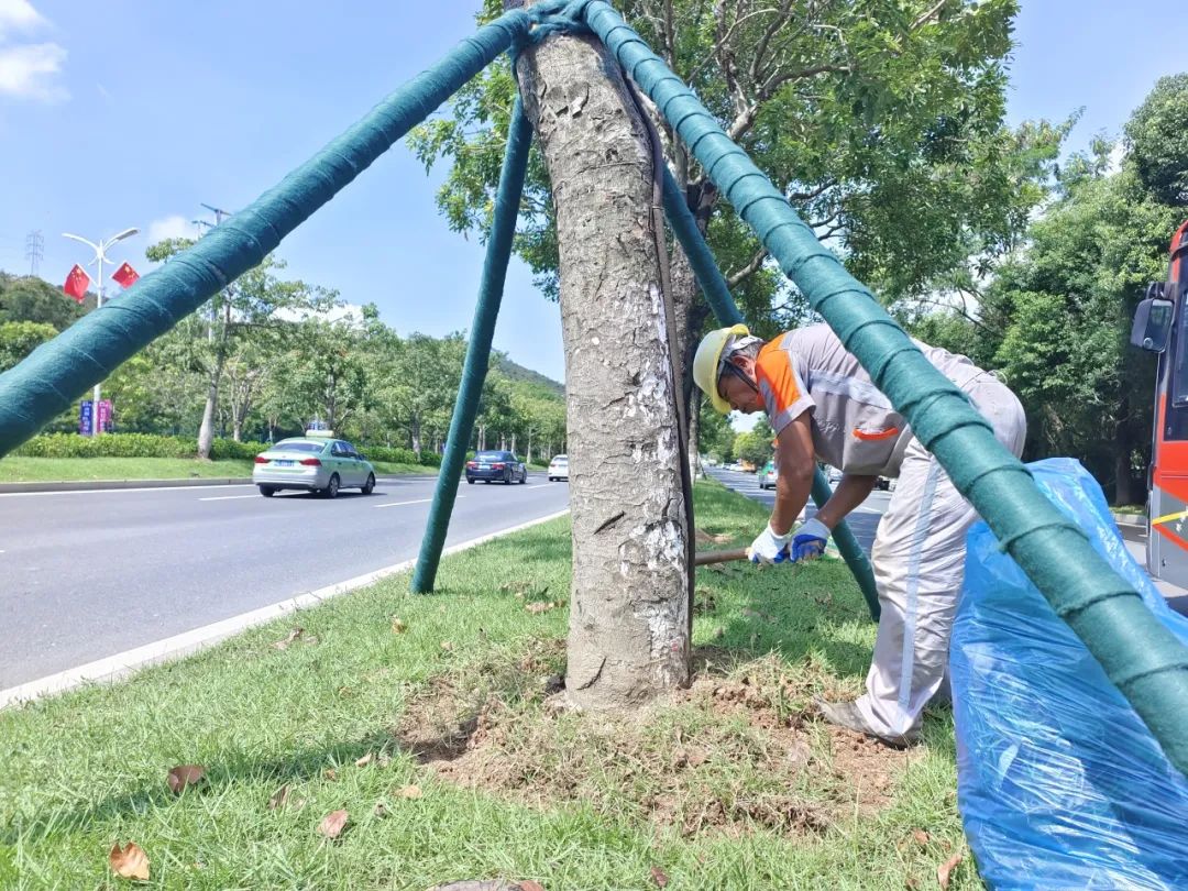 別擔心,連日來,大橫琴城資的綠化養(yǎng)護人員搶抓養(yǎng)護“黃金期”,正忙著為受損樹木“療傷”,讓它們重新煥發(fā)生機,跟著我們一起來看看他們是如何“妙手回春”的吧 。