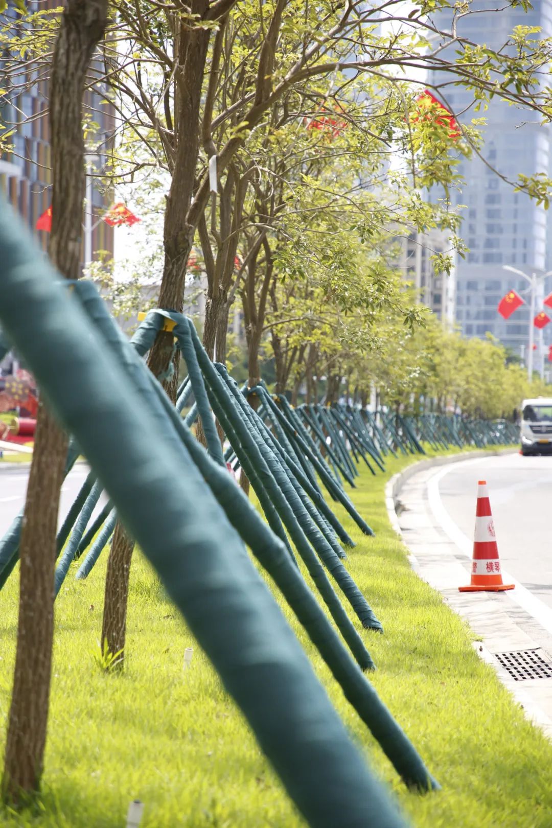 當前,各項災后綠化景觀修復工作正在有序推進。截至目前,大橫琴城資共修剪喬木7217株,加固及更換喬木支撐桿3987處,為1713株樹木涂抹了傷口涂抹劑。