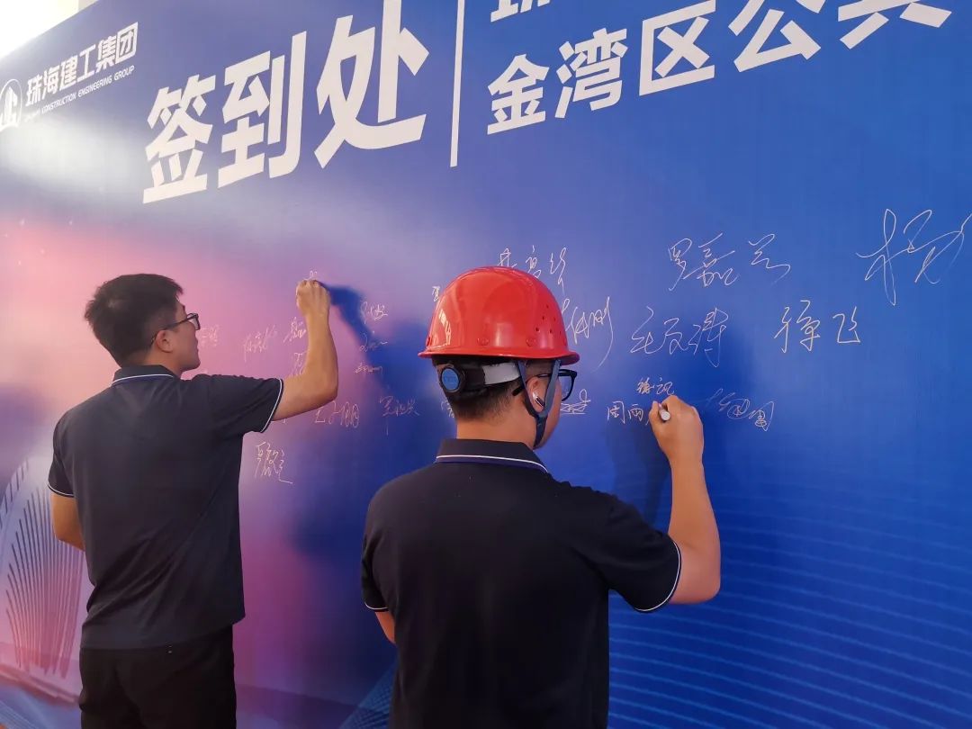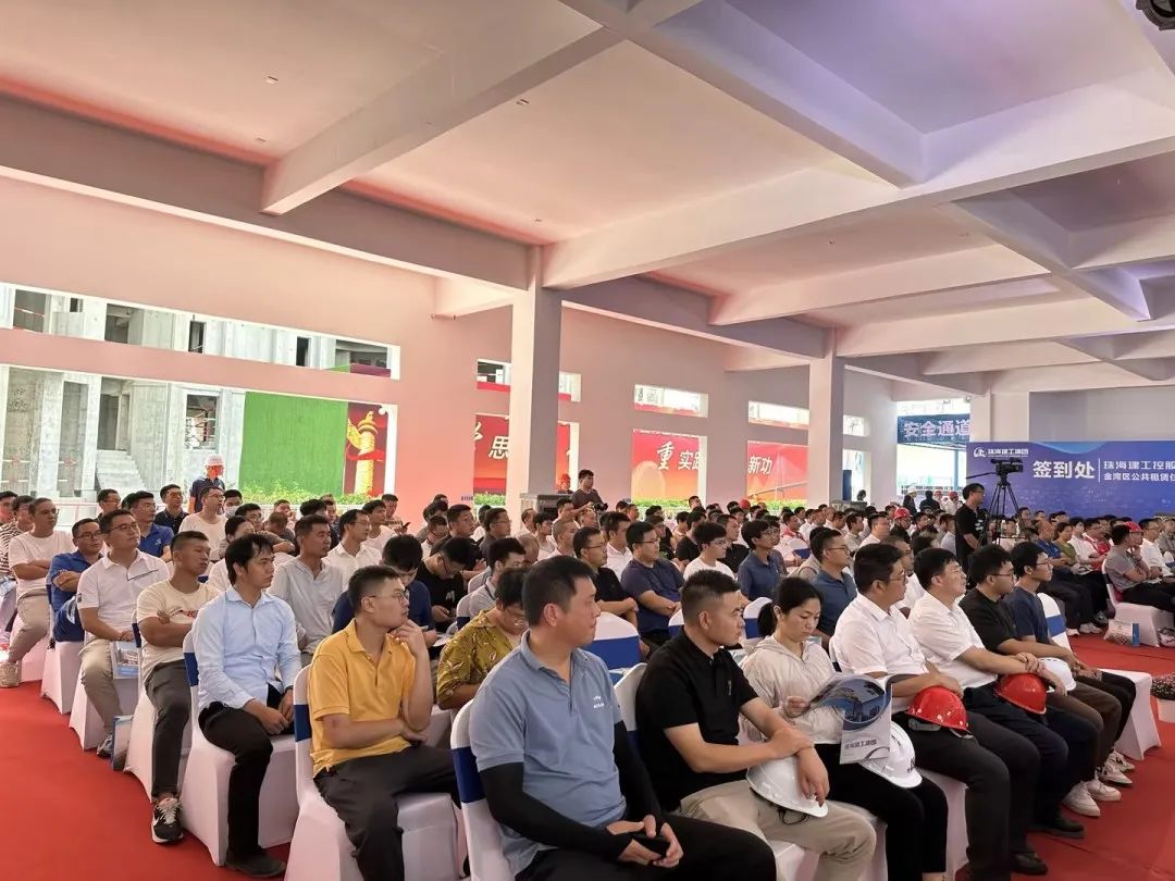 珠海市住房和城鄉(xiāng)建設局四級調研員孫飛,金灣區(qū)住房和城鄉(xiāng)建設局黨組成員梁德華,金灣區(qū)市場監(jiān)督管理局一級主任科員殷電軍,金灣區(qū)建設工程質量監(jiān)測站站長王武,金灣區(qū)住房保障中心主任劉柳亮,珠海市建筑業(yè)協(xié)會王愛志,珠海市聯(lián)港城建公司副總經理曹云,珠海市建筑設計院監(jiān)理部總經理宋祖興,珠海建工集團黨委書記、董事長黃如華等單位及領導出席活動儀式,市、區(qū)建筑領域200余人參加觀摩學習。會議由珠海建工集團黨委委員、總經理助理李純剛主持。