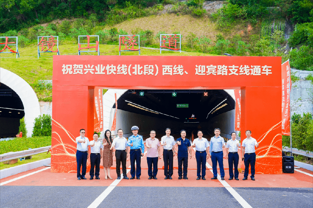 作為打通主城區(qū)南北交通“大動(dòng)脈”的重要通道,興業(yè)快線自建設(shè)以來(lái)備受廣大市民關(guān)注。其中興業(yè)快線(北段)工程,全長(zhǎng)約17.1km,礦山法暗挖段12.3km,明挖暗埋3.0km,橋梁1.8km,矩形頂管90m,工程總投資額約64億元,采用ppp模式投資建設(shè)。此次西線通車范圍包含大鏡山隧道、山谷段橋梁、楊寮隧道等,另外迎賓路支線石溪隧道以及大鏡山橋梁此次一并開放通車,整體通車?yán)锍碳s10千米。
