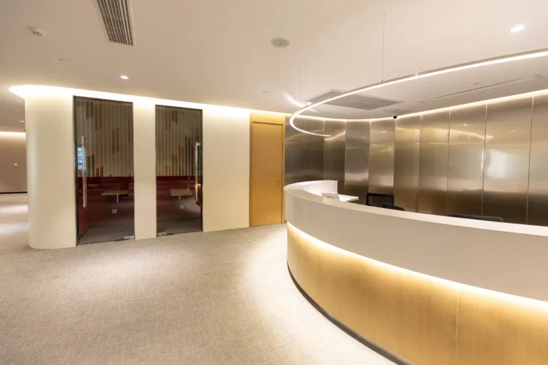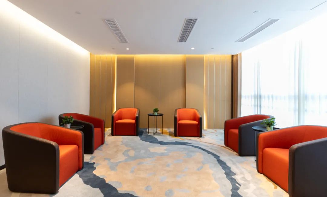 沒(méi)有鮮艷的色調(diào),摒棄傳統(tǒng)辦公空間所青睞的金碧輝煌風(fēng),改用棕色座椅搭配著灰白色地毯,咖色沙發(fā)搭配棕紅色背景墻,慢慢過(guò)渡的色彩讓整個(gè)空間更加柔和、干凈和高雅,無(wú)論是辦公還是社交,都能給人提供一個(gè)有溫度的空間,讓科創(chuàng)er的工作和生活連結(jié)地更加融洽。