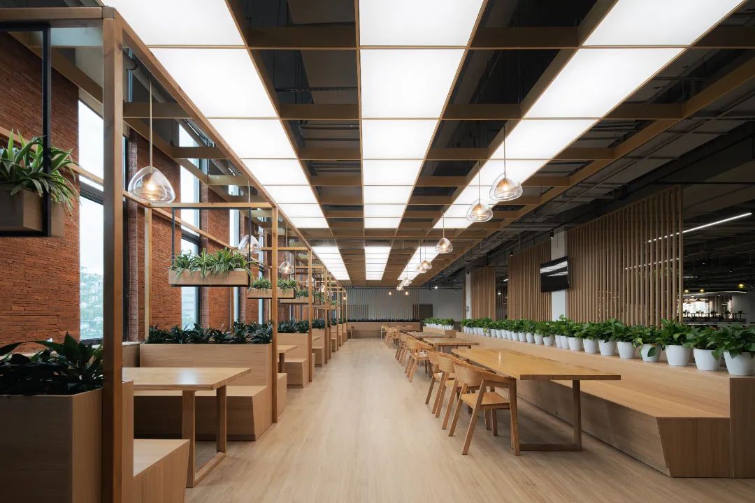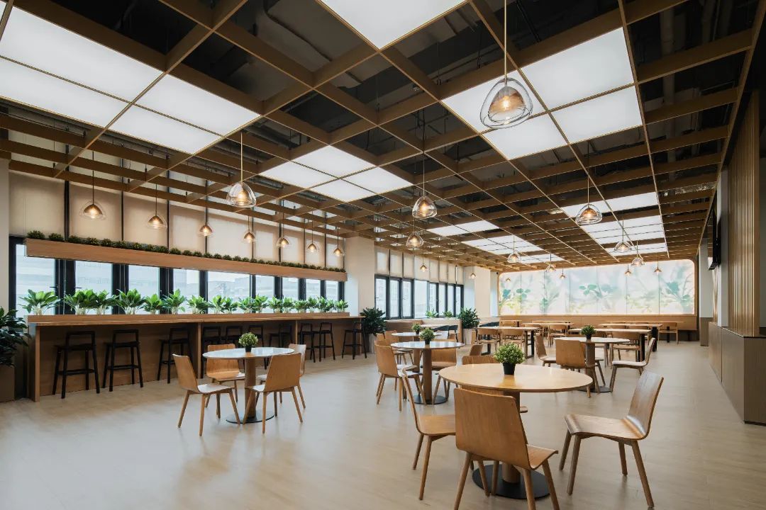 食堂在設(shè)計時,就充分考慮這還是一個社交空間,空間上分割成滿足不同社交需求的空間,靈動多元。