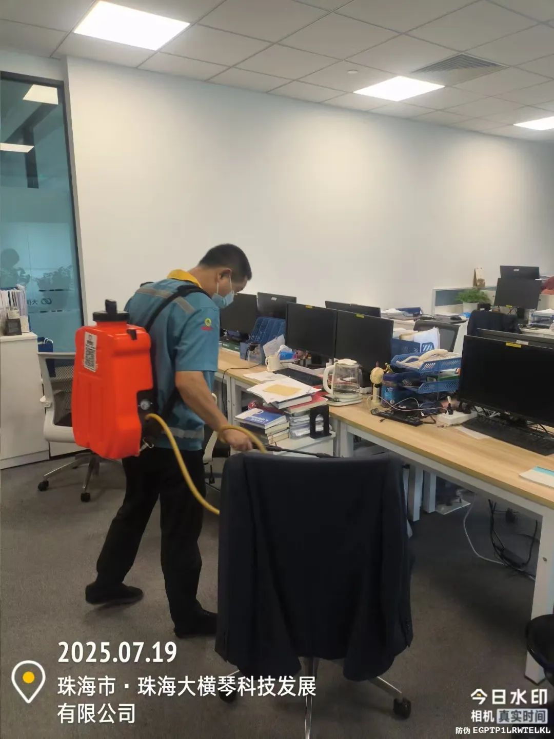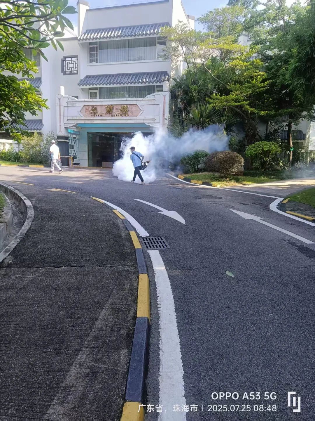 從在建項目工地到星樂度·露營小鎮(zhèn),從南油大酒店的綠化帶到橫琴口岸的旅客通道,從5.0產(chǎn)業(yè)園區(qū)的生活區(qū)域到所轄物業(yè)項目的公共區(qū)域,都活躍著珠光人忙碌的身影,他們或在進行全面地毯式清理消殺,或是宣貫蚊媒防控要點,全力以赴做好基孔肯雅熱疫情防控工作。